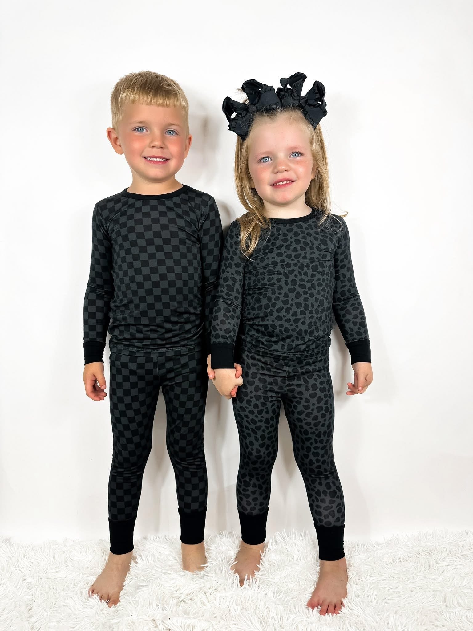 Neutral Checkered Womens Ribbed Daywear Pant Set